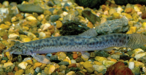 A small, eel-like fish with a rounded tail and small eyes, growing to a maximum length of 250mm. Five pairs of barbels surround the small down-turned mouth. The mucous-covered body is very slippery, making the species difficult to handle.