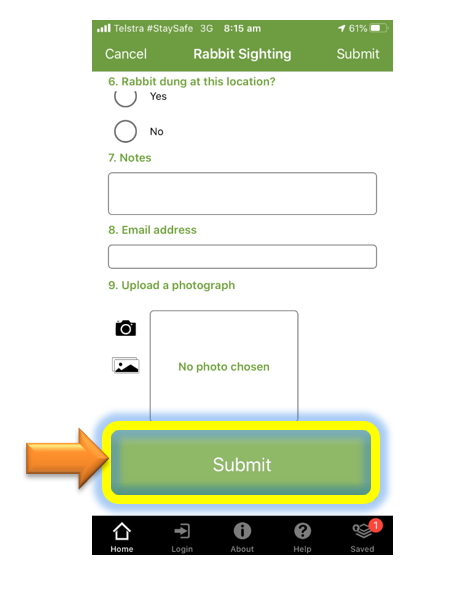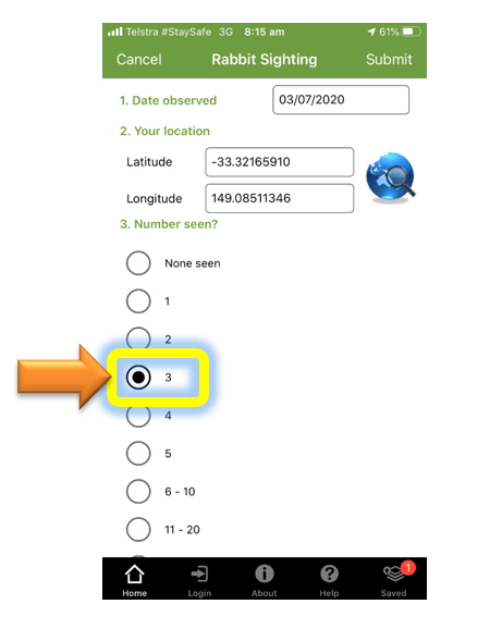 Example – How to record sightings of rabbits using the App.